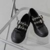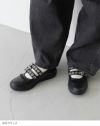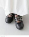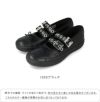 つま先部分にはバレエシューズに見られる華奢なリボンをあしらいつつ、ハトメを多く打ち込んだ2本ベルトを採用!