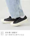 レディースに人気の厚底タイプをベースモデルに採用したオールスター。アッパーにトレンドのグリッター素材を採用し、足元のアクセントに。