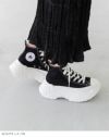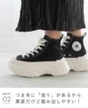 たっぷりとした厚底ソールはつま先部分に返りがあるので踏み出しやすい仕様に。厚底だけど歩きやすいのが特徴です。