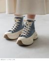 ボリュームソールで自然なスタイルアップ&足首までしっかり覆うハイカットは、脚元をよりスッキリとした印象にしてくれます◎