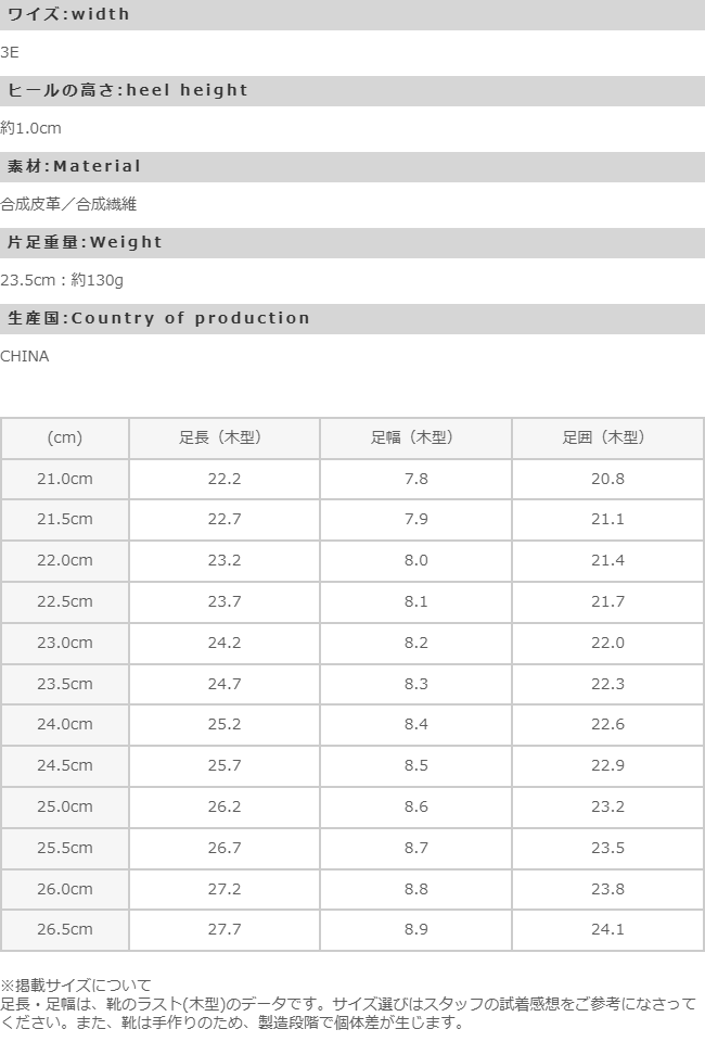 ※掲載サイズは、靴のラスト(木型)のデータです。
