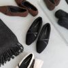 ポインテッドトゥ×異素材ストラップで甘さを抑え、カジュアルな服にも馴染むスタイルに。