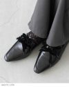 スッと伸びたトゥとベロアリボンが印象深い秋冬コーデにしてくれる。