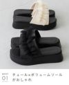 トレンドのチュールフリルに重ためのボリュームソールを合わせることで、甘すぎないおしゃれさに。