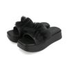 さっと履けるミュールタイプの厚底サンダルにトレンドのフリルを合わせて、甘すぎない大人可愛いスタイリングに。