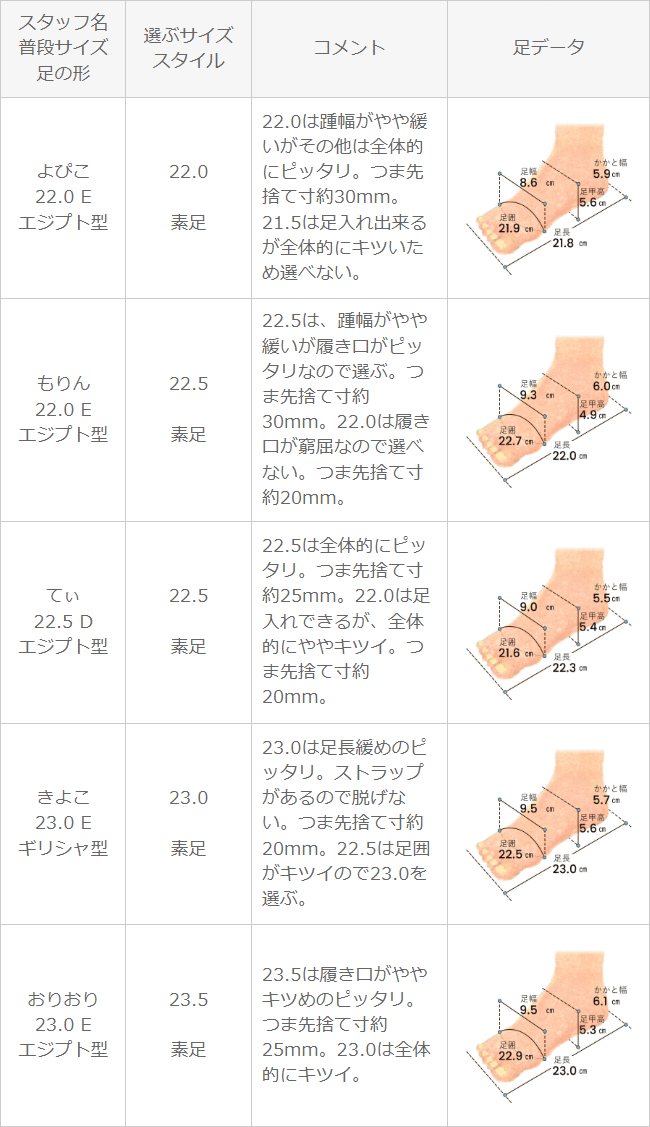 ※足の形には個人差があります。スタッフ試着感想は参考程度にお考え下さい。