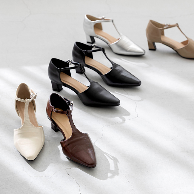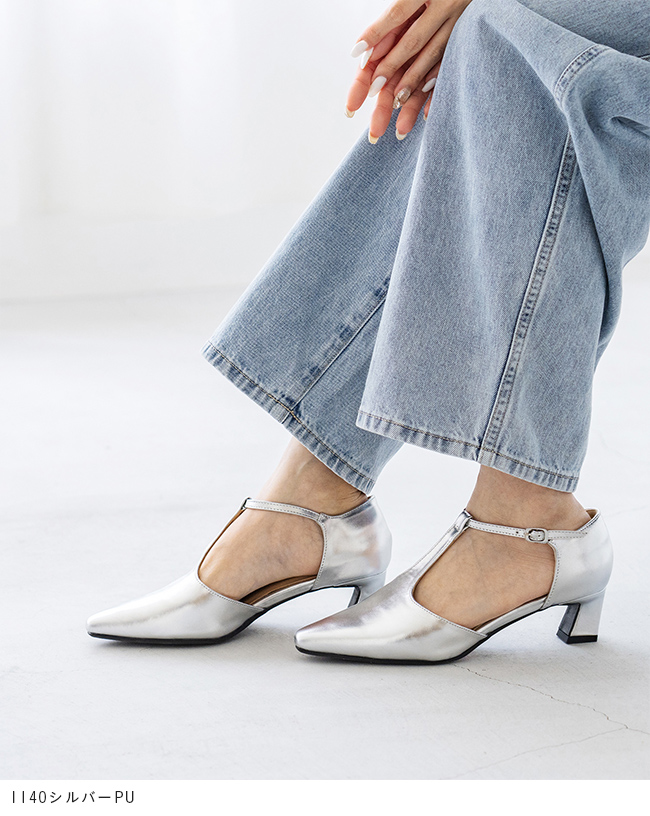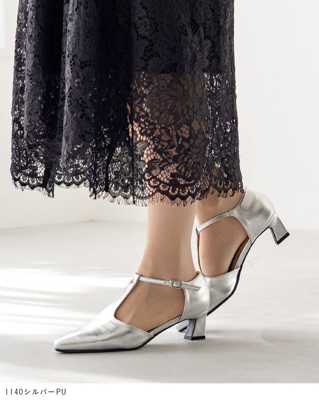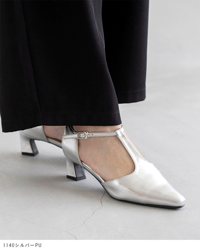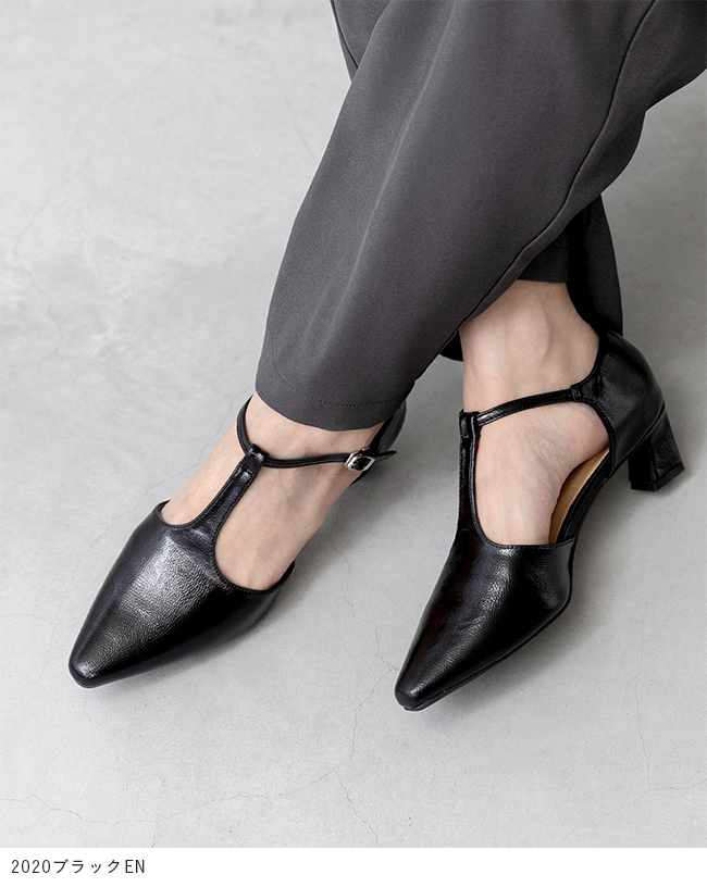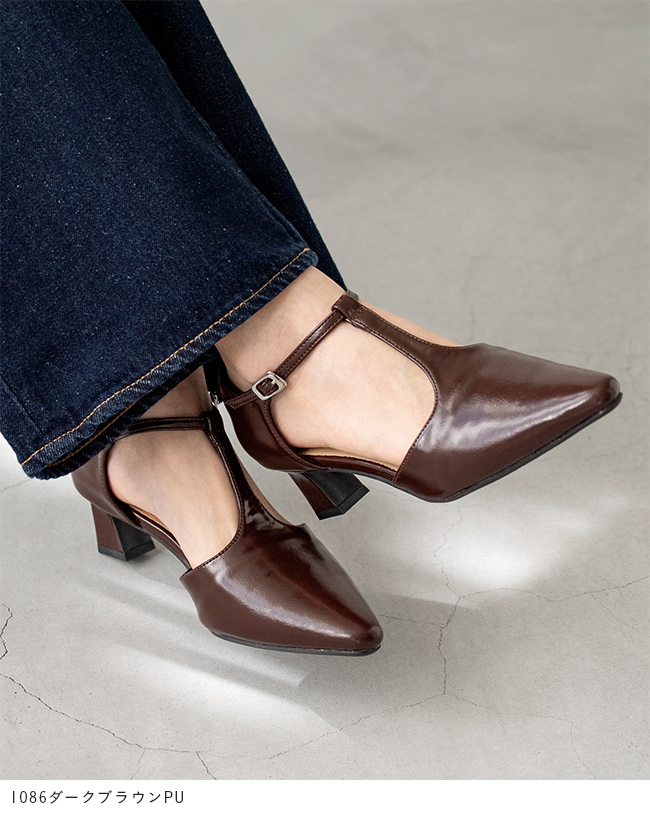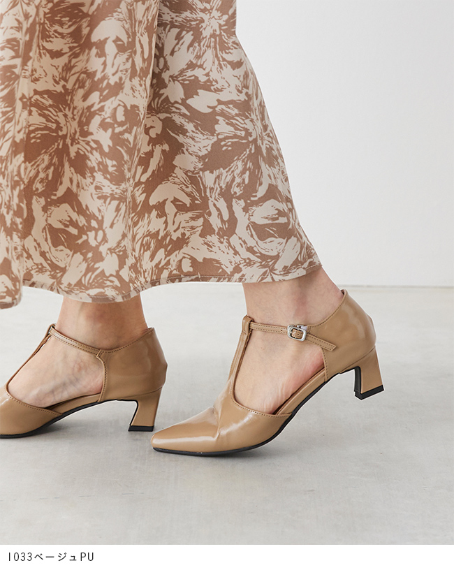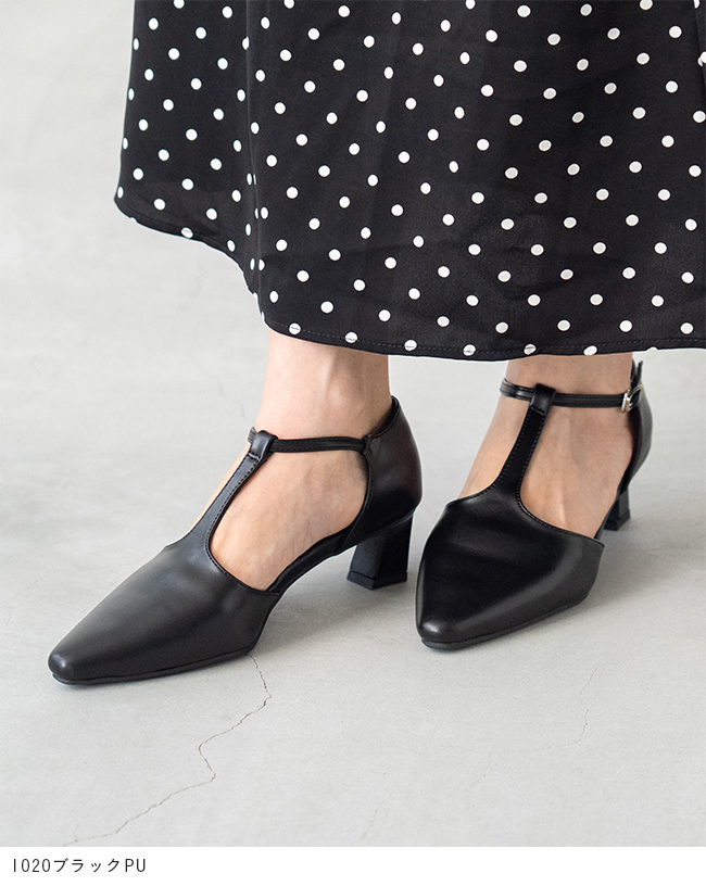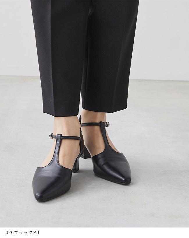 Tストラップ ヒールパンプス