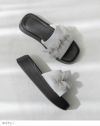 さっと履けるミュールタイプの厚底サンダルにトレンドのフリルを合わせて、甘すぎない大人可愛いスタイリングに。