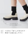 旬な目を引く厚底に、細身なニットの筒周りがカジュアルさを抑えた大人も合わせやすいバランスに。