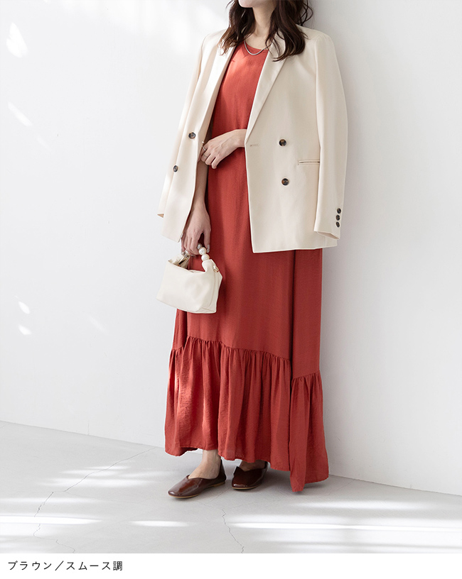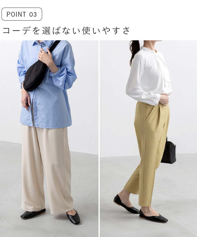 カジュアルコーデはもちろん、上品な素材感はオフィスのキレイめコーデにもマッチ。