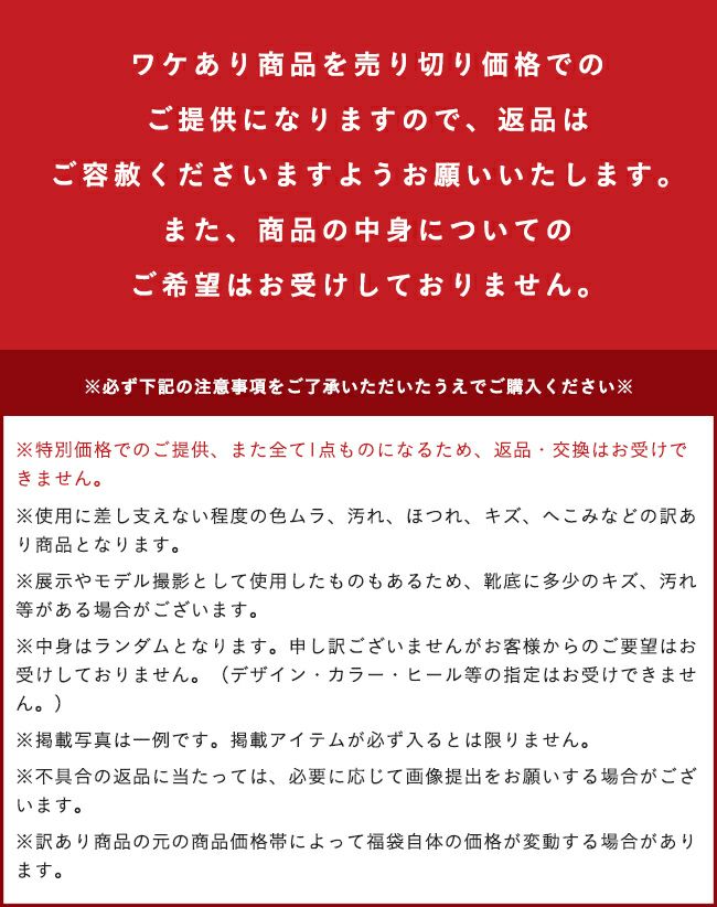 他の画像を見る カートに入れる お気に入りに登録する 可愛さはそのまま◎ちょっぴり訳ありお得な幅広アイテム1点入り! 幅広 HAPPY BAG 福袋 送料無料 定価 ¥ 1,699 のところ 販売価格 ¥ 1,699 税込 5.00 (1件)