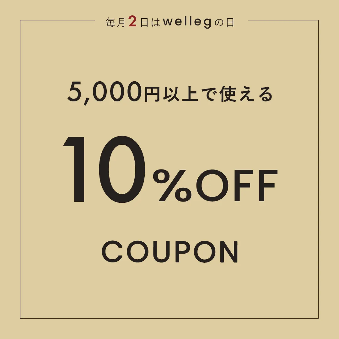 wellegの日特別クーポン 【利用期間】11/1(土)0:00~11/10(月)9:59 クーポンはマイページにお届けしております。クーポン確認メニューよりご確認ください。 お客さま感謝Day!wellegの日 この日にお買い物いただいたお客さまにもれなくプチプレゼントあり!商品と一緒にお届けします。