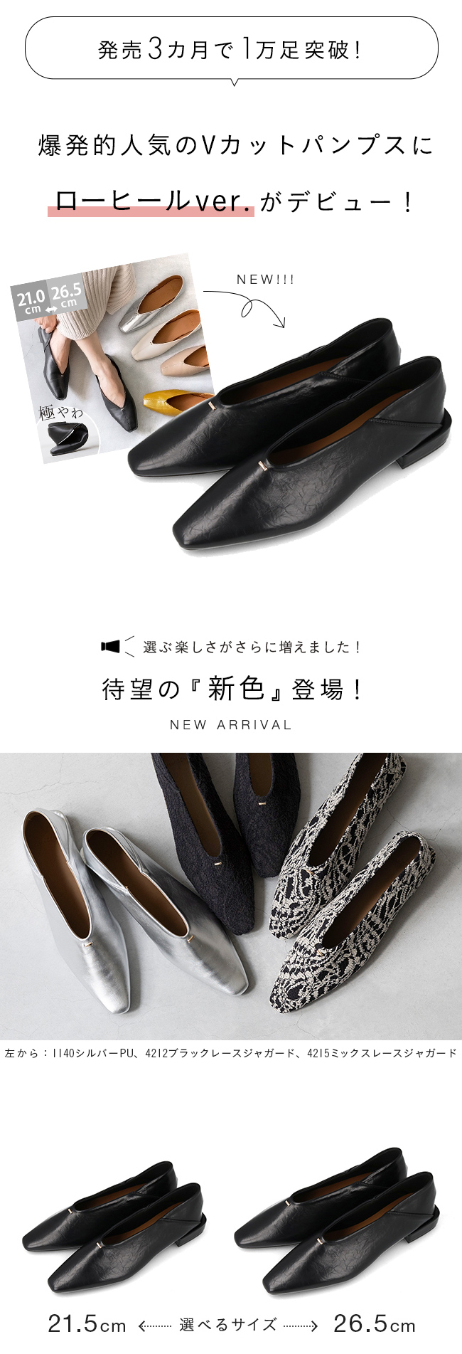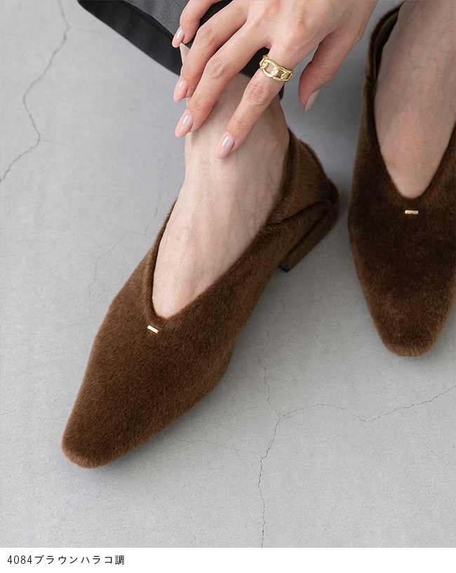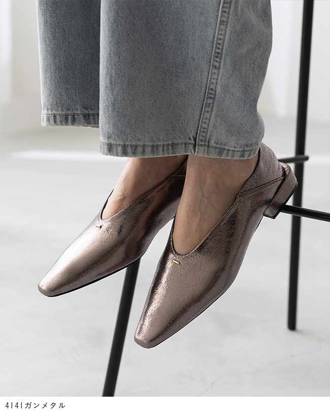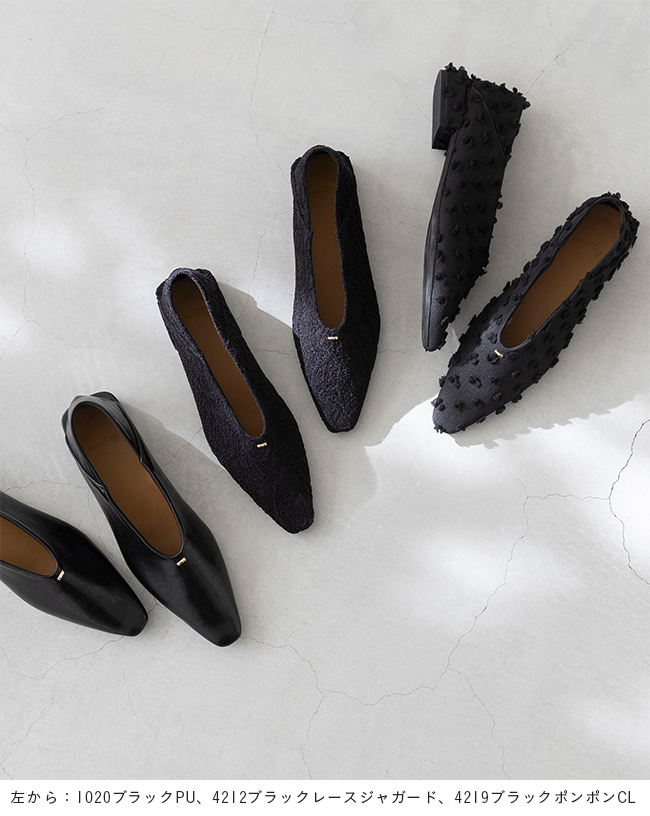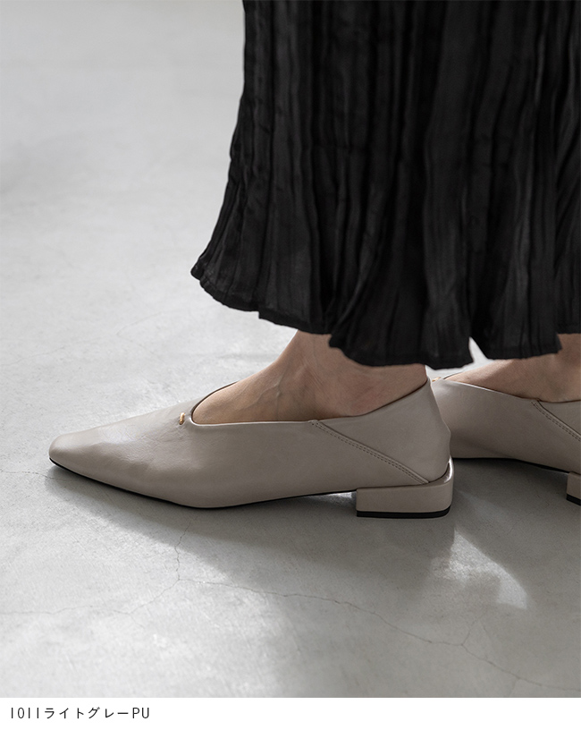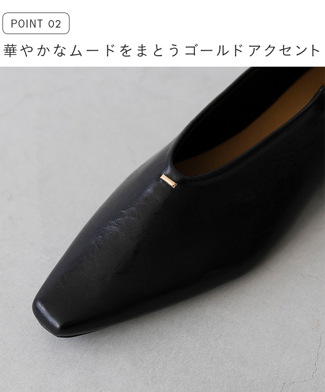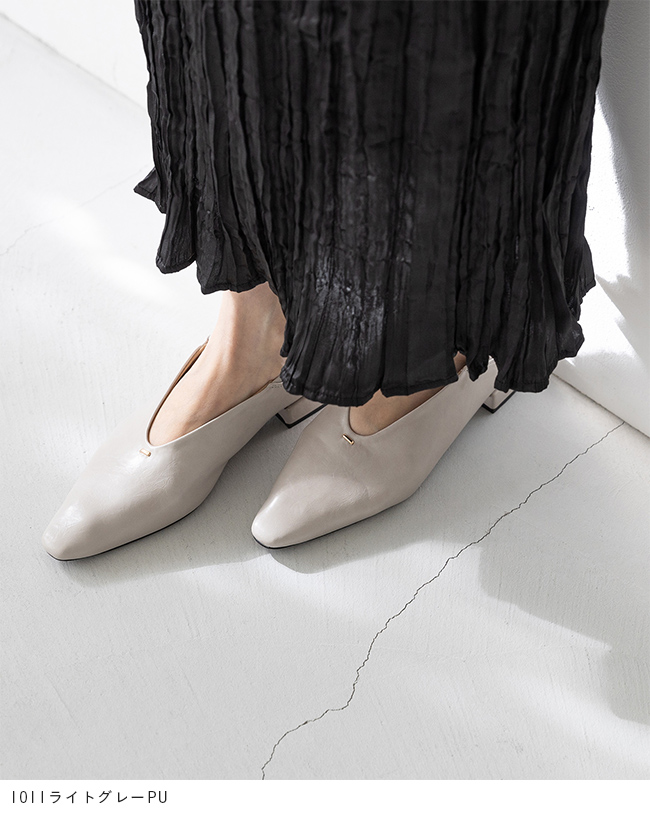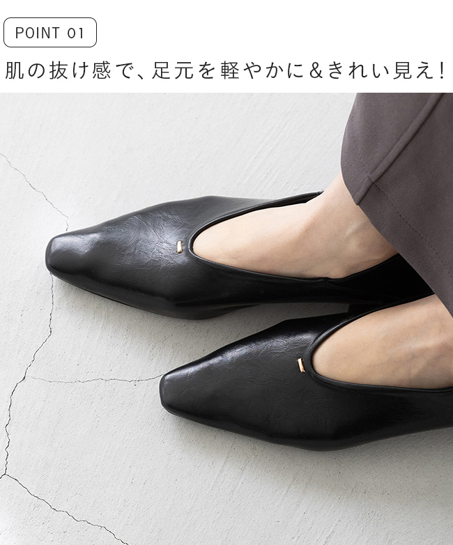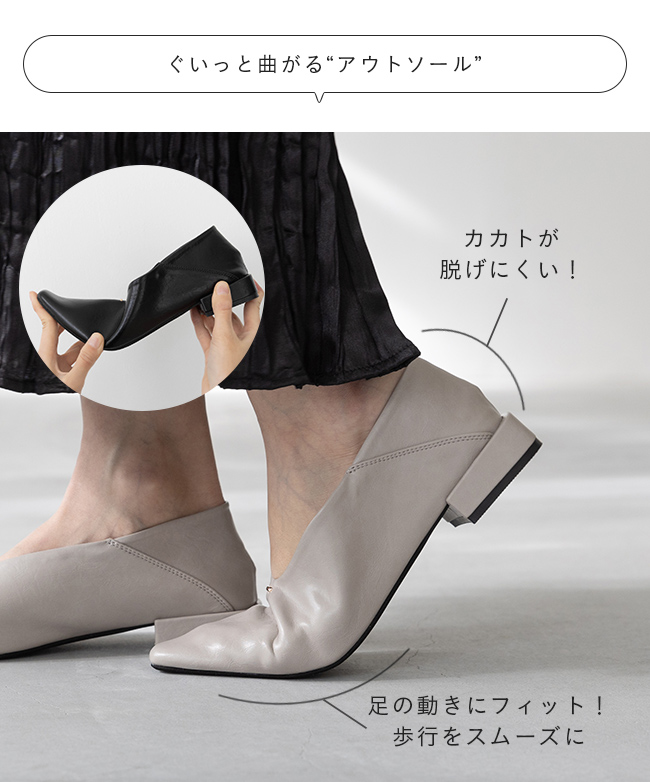 甲部分がUカットなので、甲深でフィットするデザインでもすっきり軽やかな印象で足をきれいに魅せる!