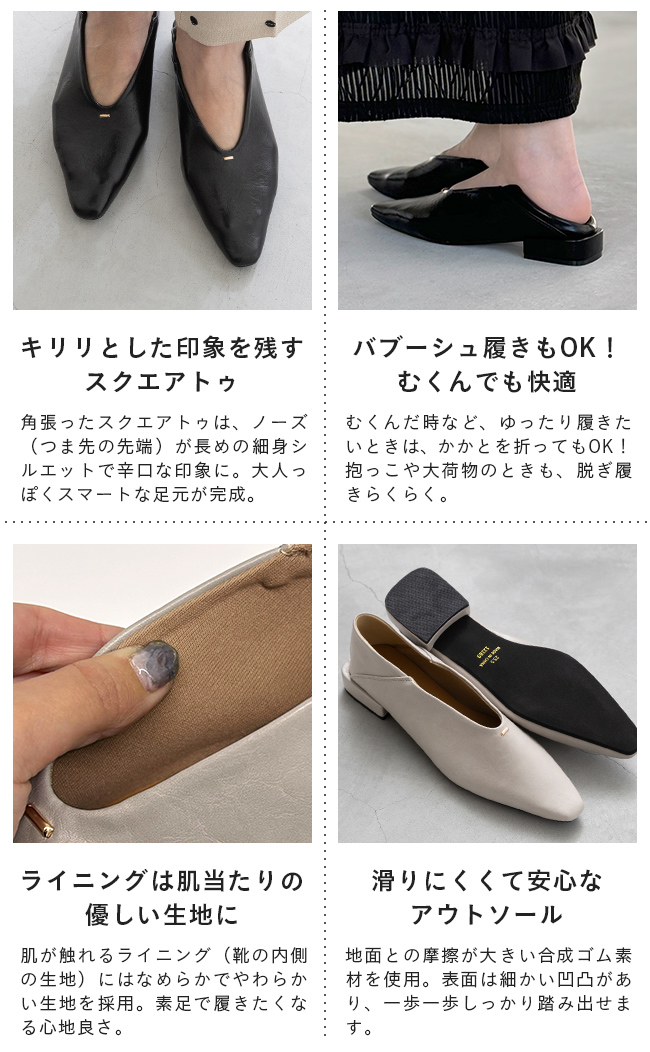 さらにこちらのアイテムは、オーバーヒールをプラスすることで、横・後ろどこから見てもおしゃれを実現。