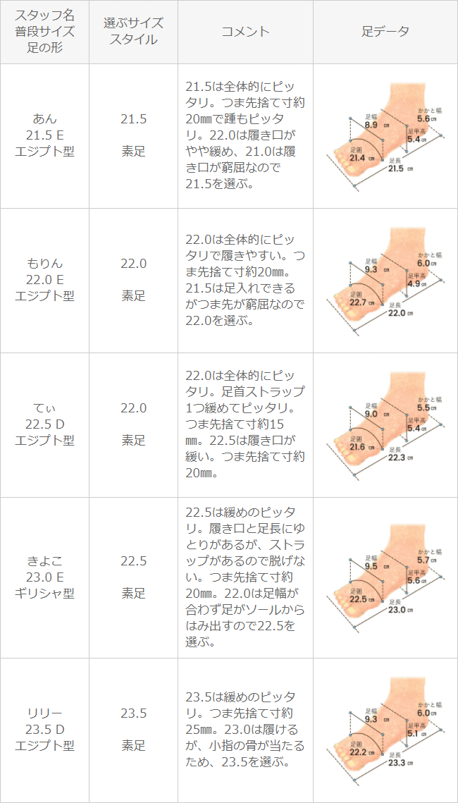 ※足の形には個人差があります。スタッフ試着感想は参考程度にお考え下さい。