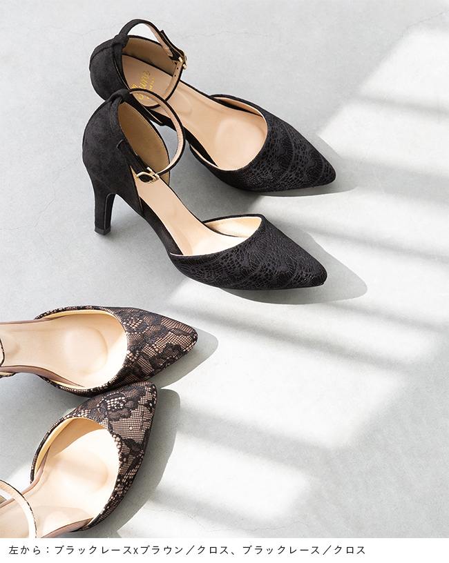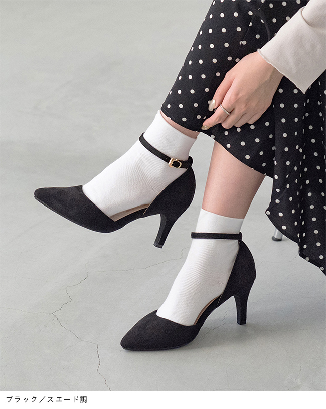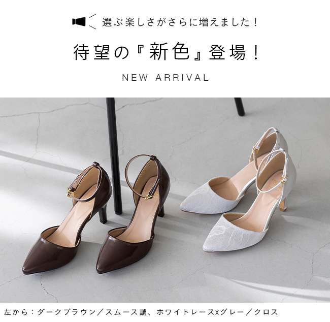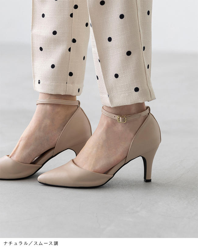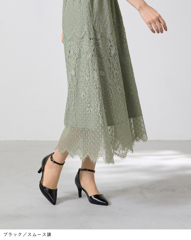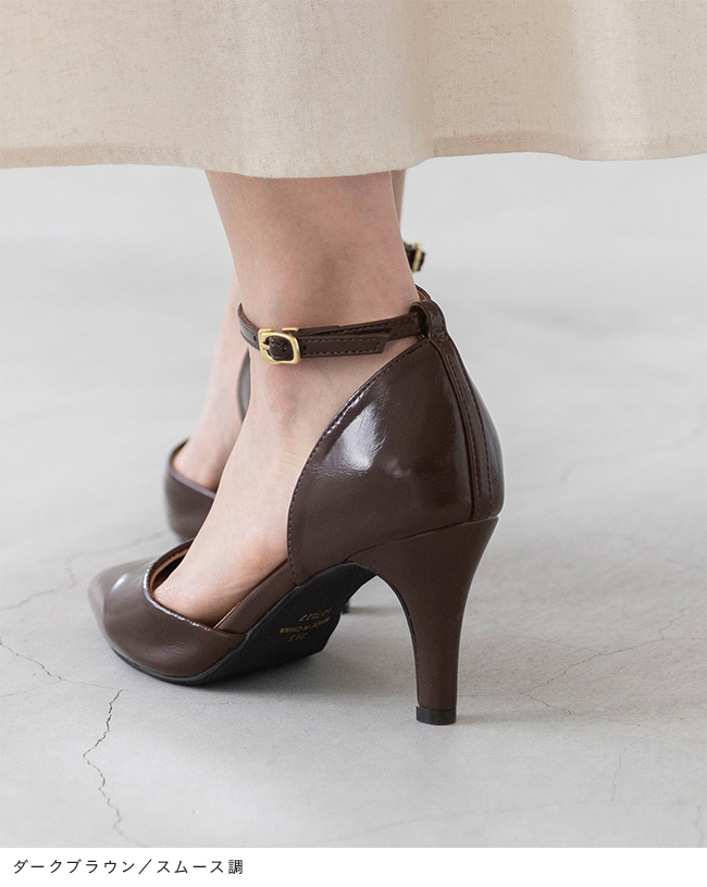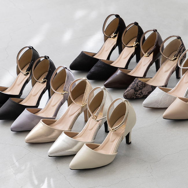 細めのヒールがエレガントさを引き立て、足をすらりと長く美しく魅せてくれます。