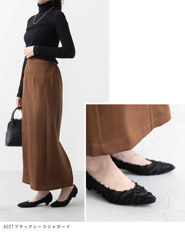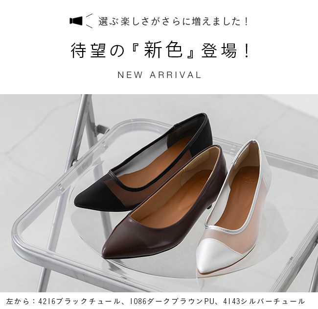 ・チュール素材は生地が柔らかいため、同じサイズでもややゆったりと感じられる場合がございます。製造工程・サイズ規格は他カラーと同一ですが、素材特性として試着感に差が出ることがございます。