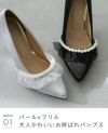 パールデザインの大人かわいさをぎゅっと詰めたパーティパンプス