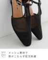 アッパー(表の生地)はメッシュ素材なので気温の高い春夏シーズンでも足元快適。またメッシュ生地はやわらかく作られているので窮屈感のない履き心地。裏面にはチュール素材を使用しているので足の当たる部分もスムースで不快感なし!