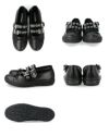 つま先部分にはバレエシューズに見られる華奢なリボンをあしらいつつ、ハトメを多く打ち込んだ2本ベルトを採用!