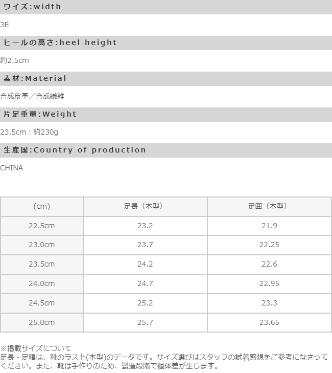 ※掲載サイズは、靴のラスト(木型)のデータです。