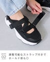 甲にもかかとにもストラップ付きのため、自分好みの履き心地に調整可能! ホールド感もあり、歩きやすさを叶えます。