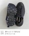 アウトソールは摩擦力の高い合成ゴム素材を使用。凹凸の溝が地面に引っかかり滑りにくくて安心!