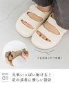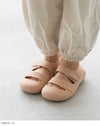 ストラップはペタッと貼り付ける面ファスナーだから、脱ぎ履きがとっても簡単! 小さなお子さまでも、自分でつけ外し出来る! ストラップを外すと履き口がしっかり開くのも嬉しいポイントです。