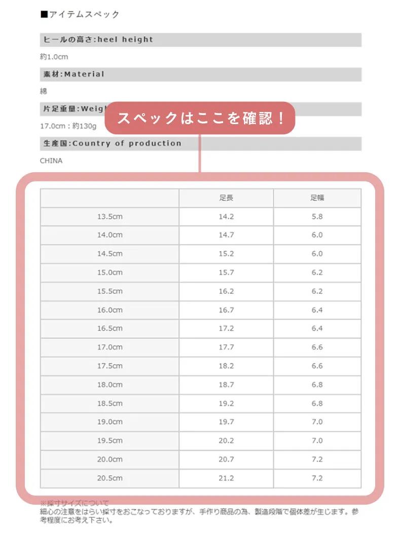 大きいサイズを購入する場合は、足の足長とくつの足長との差が大きすぎないもの(1サイズ上げるのがベスト)を選びましょう。