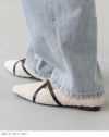ポインテッドトゥ×異素材ストラップで甘さを抑え、カジュアルな服にも馴染むスタイルに。