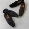 クラシックで上品なベロア調と華やかなハラコ調を使用した一癖あるオペラシューズ。