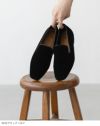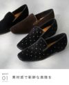 上品なベロア調と、スタッズを合わせたハラコ調の、素材感を楽しめるオペラシューズ。