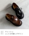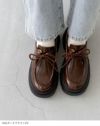 マニッシュな印象のレザー調のレースアップシューズはラウンドトゥで可愛さもプラス。