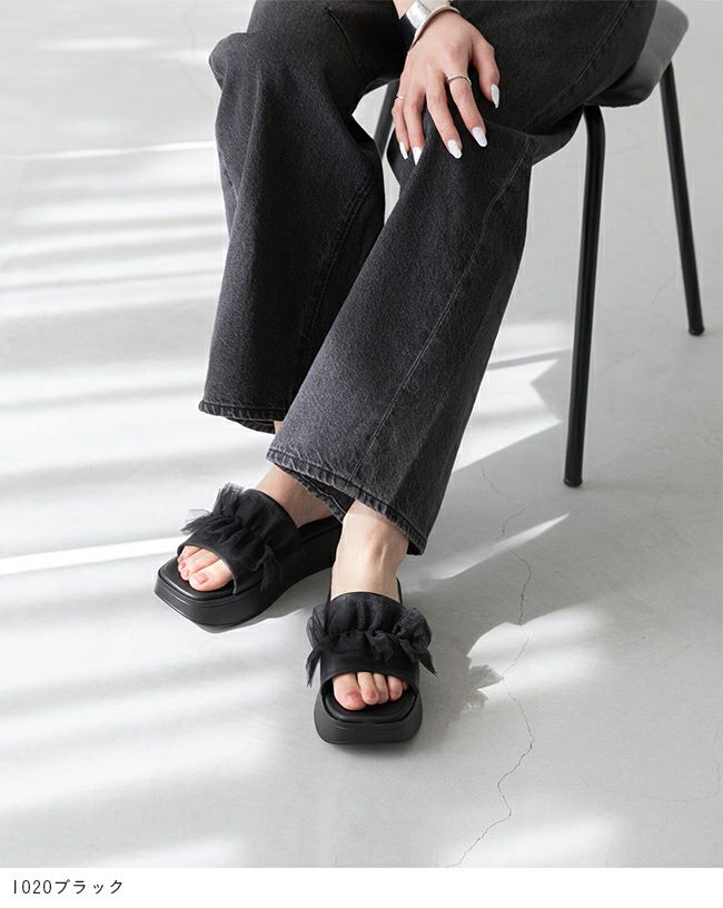 他の画像を見る 詳細を見る お気に入りに登録する ボリュームソールで甘すぎない大人可愛いスタイリングに menue (メヌエ) チュールフリル 厚底 ミュールサンダル 送料無料 SALE 定価 ¥ 4,299 のところ 販売価格 ¥ 1,899 税込 (0件)