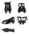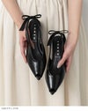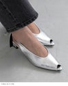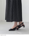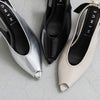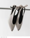 ぱっと目を惹くバックストラップについたリボンはサイズは大きめだが程よい細さでいやらしくない存在感に。変形ヒールでさらに個性をプラスしつつ、トレンドのピープトゥを合わせることで抜け感が出て全体のバランスを調節。個性的なのにスタイリッシュなデザイン性のある1足に仕上がりました。