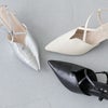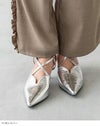 女性らしさを際立たせるディテールを詰め込んだVカット クロスストラップパンプス