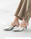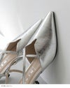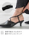 トレンド継続中の細ストラップを足の甲でクロスさせた一味違ったデザインパンプス。
