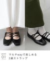 3連の細くて華奢なストラップが、絶妙な抜け感になり細見え。