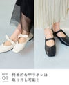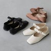 甲のリボンはつけ外し可能で、靴下と合わせてもかわいく自由自在なアレンジで履けちゃう!かかとを踏んでバブーシュにも◎