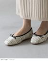 幅広さん向け 4E スクエアトゥ フラットバレエシューズ