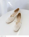スクエアトゥ クロシェ編み ローヒール パンプス