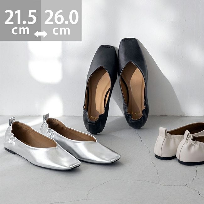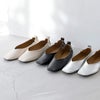 シンプルなシルエットにつま先ステッチとかかとギャザーを加えた使いやすいフラットシューズ。