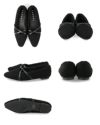 ポインテッドトゥ×異素材ストラップで甘さを抑え、カジュアルな服にも馴染むスタイルに。