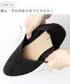 適度にハリがありながらもやわらかく足に馴染むリブニット調の生地が、つま先からかかとまで心地よく包み込みます。 アウトソール(本底)は手でも曲げられる屈曲性の良い合成ゴム素材だから、歩く足の動きにしっかりフィットして歩きやすく脱げにくい!