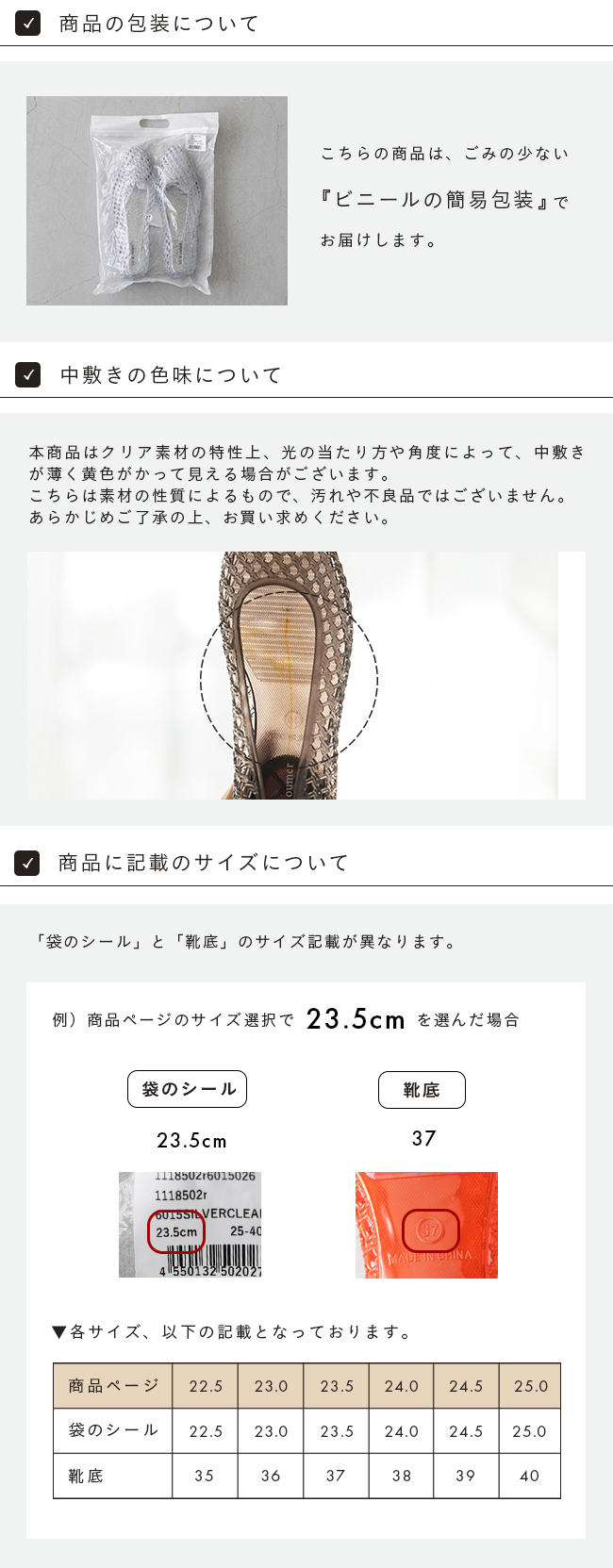 ※袋のシールと靴底のサイズ表記が異なっています。袋のシールのサイズをご確認ください。