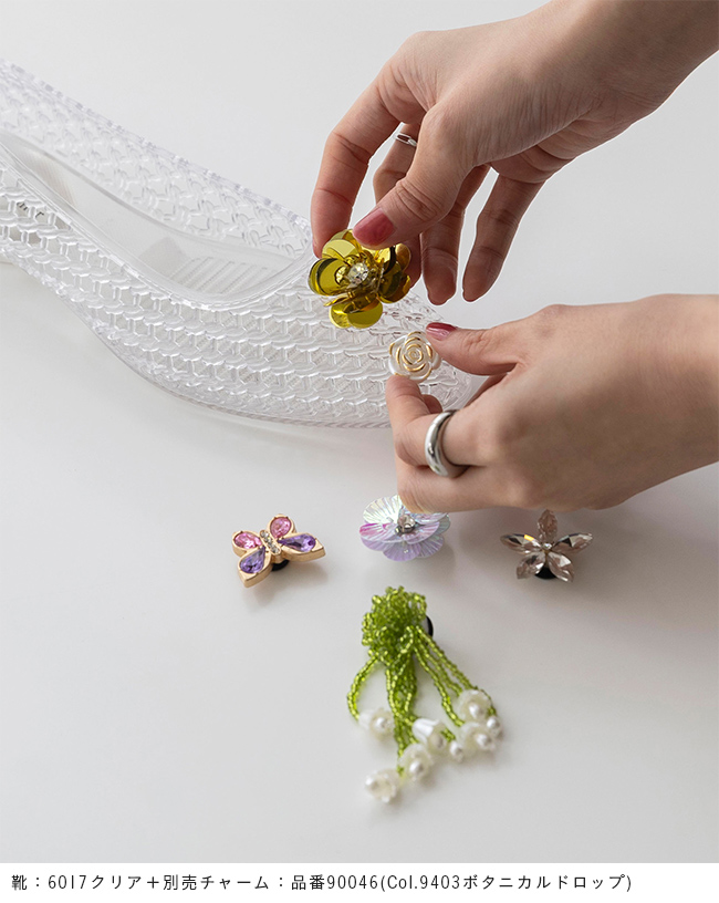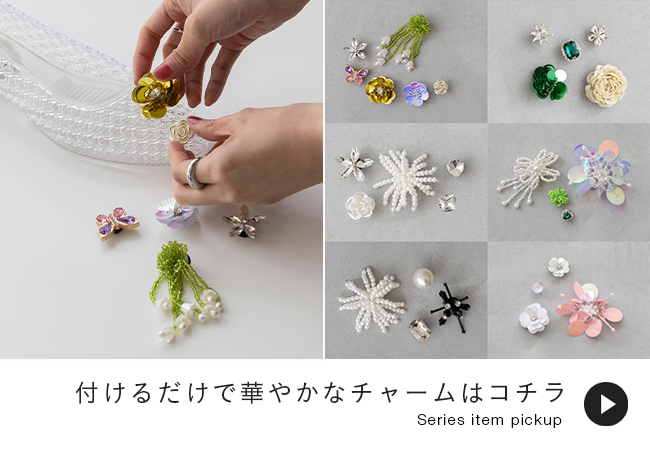 別売りの「選べる6セット シューズ チャーム(品番:90046)」を付ければ、さらに可愛くアップデート!