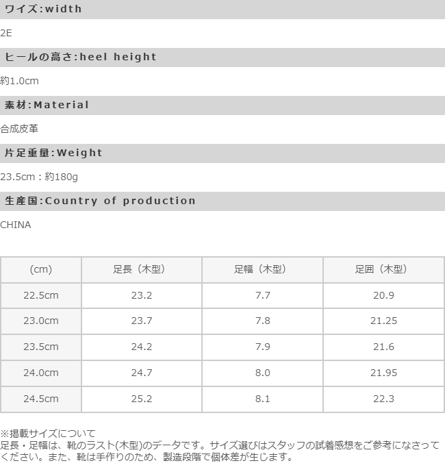※掲載サイズは、靴のラスト(木型)のデータです。