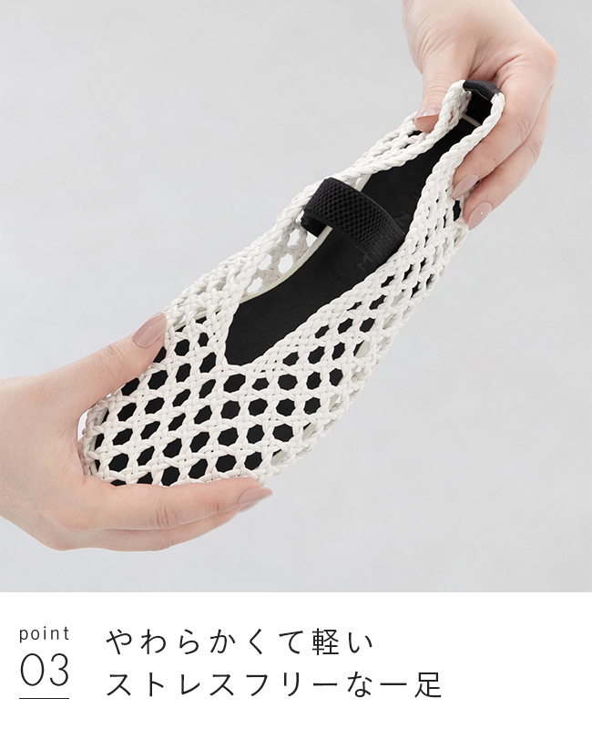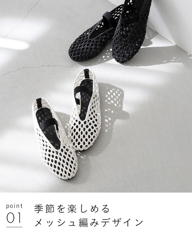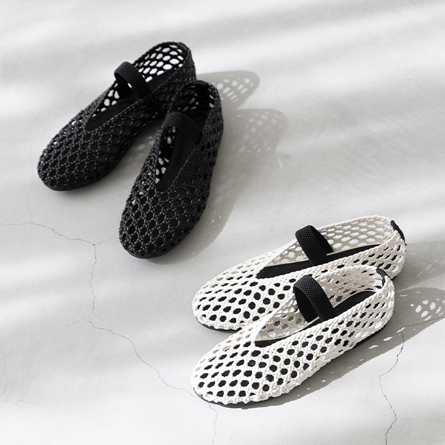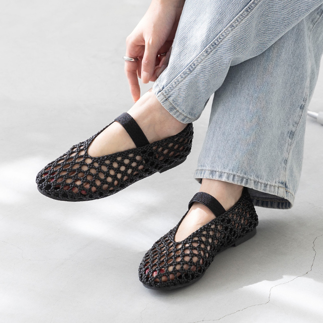 メッシュ編みがソフトな履き心地 涼し気な足元で軽やかに
