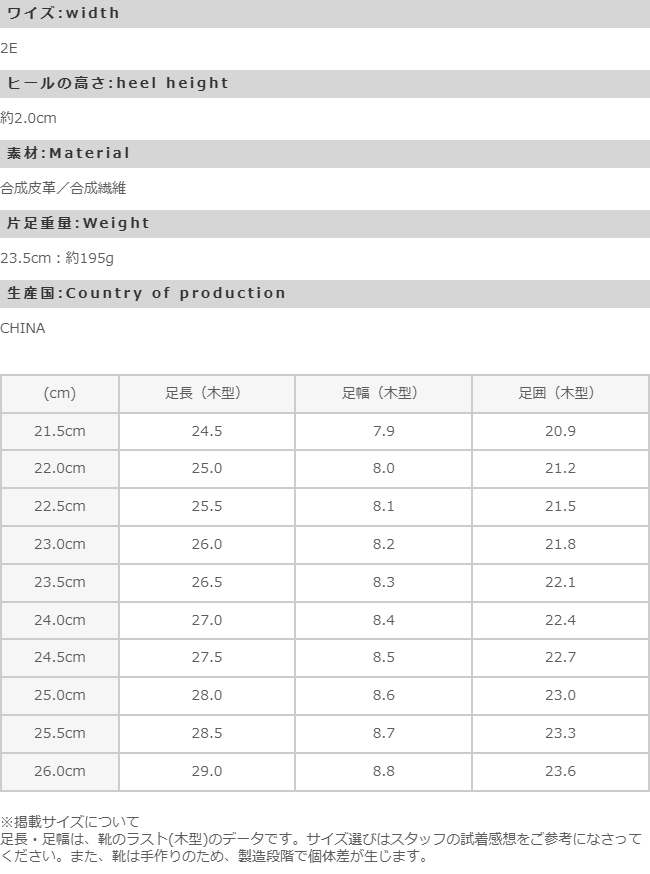 ※掲載サイズは、靴のラスト(木型)のデータです。