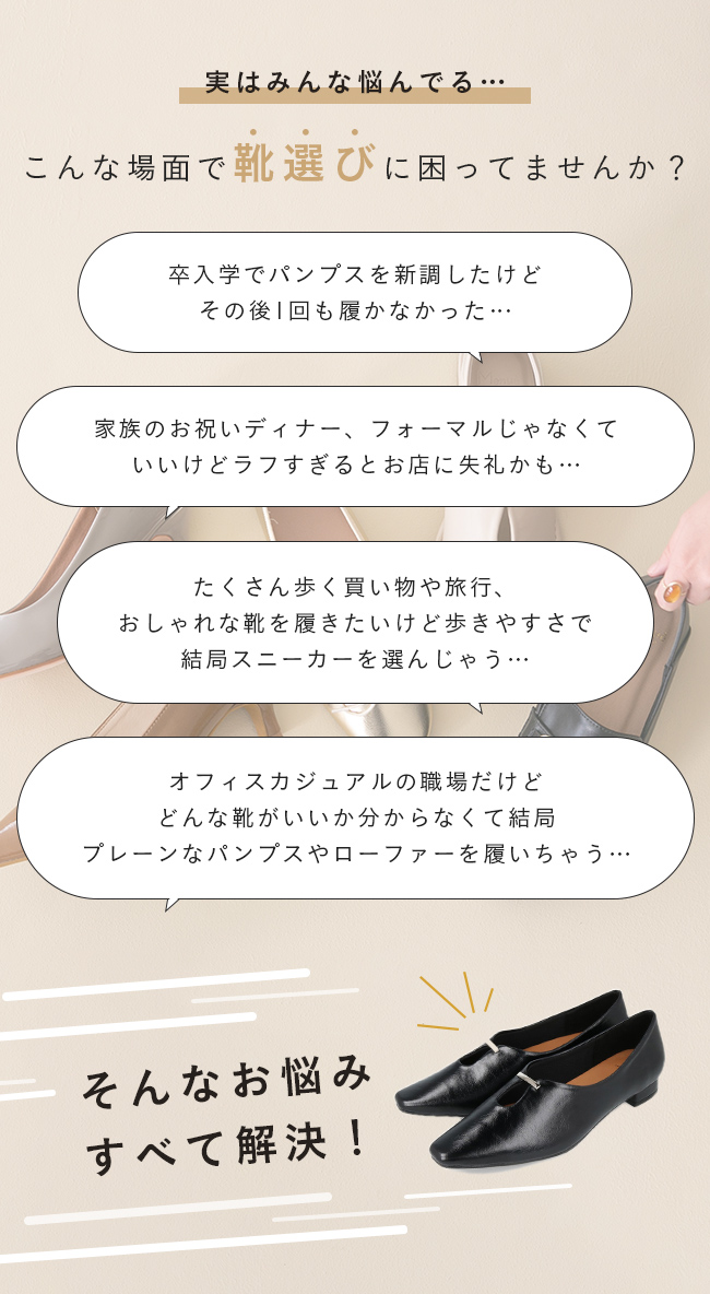 ■かっちりしすぎずラフすぎないデザイン&絶妙な高さのヒールだからどんなシーンでもこの1足におまかせ!